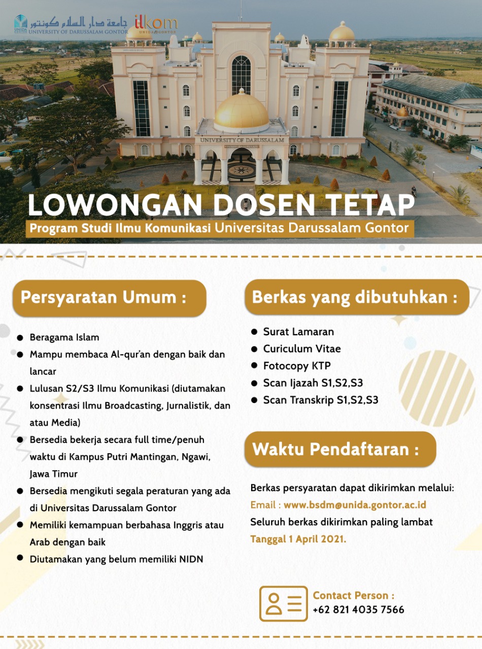 Lowongan Dosen Tetap – Universitas Darussalam Gontor