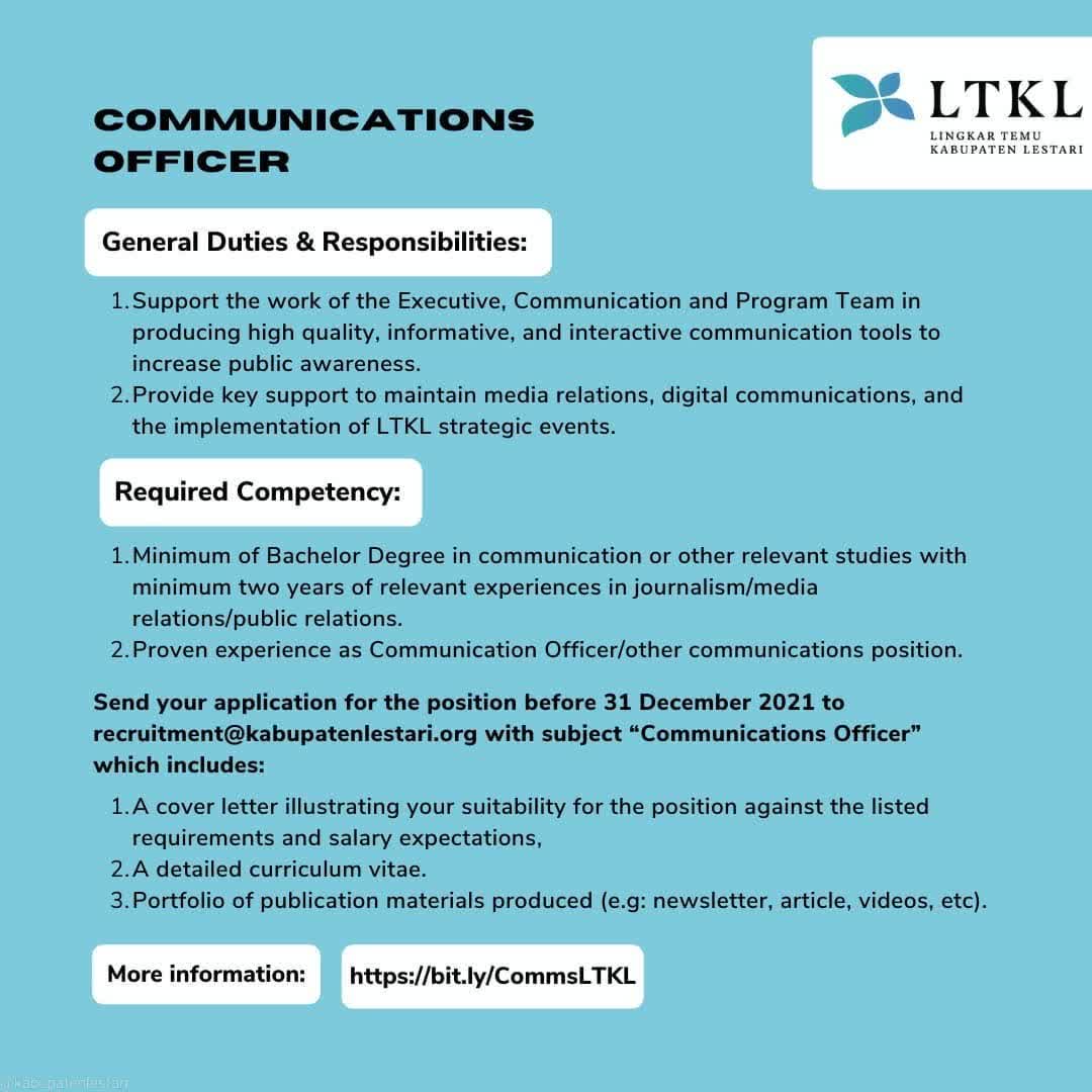 Lowongan Pekerjaan : Communication Officer di Lingkar Temu Kabupaten Lestari, Deadline 31 Desember 2021